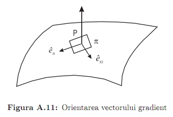 Să considerăm, în continuare, o porţiune de dimensiuni infinitezimale a unui plan tangent în punctul P la suprafaţa de nivel constant (Fig.A.11). Toate punctele din planul din imediata vecinătate a lui P, se vor caracteriza prin aproximativ aceeaşi valoare a lui şi, ca urmare: