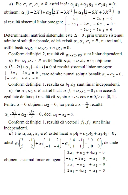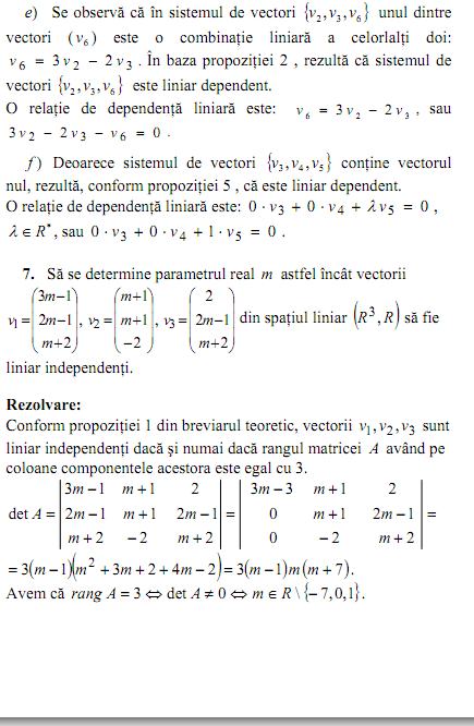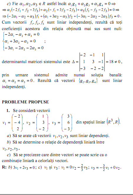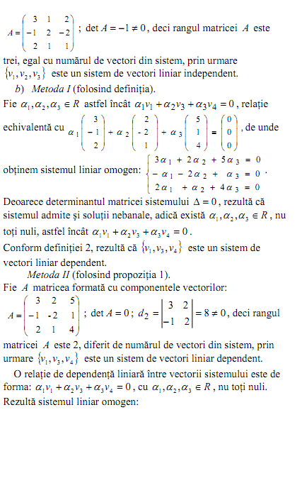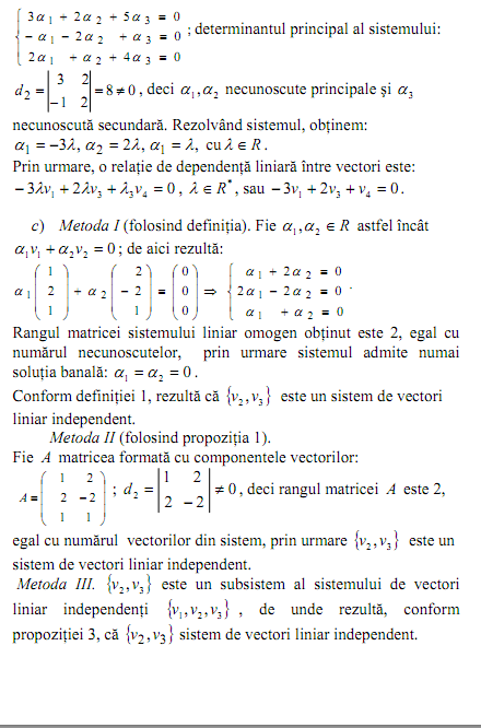 c) Deoarece vectorii sunt liniar dependenţi, conform propoziţiei 2 rezultă că