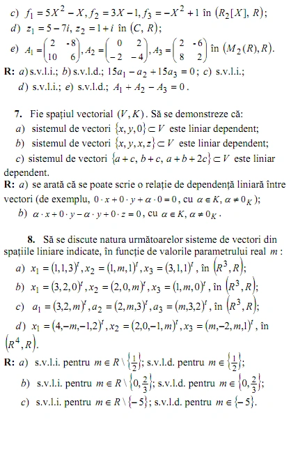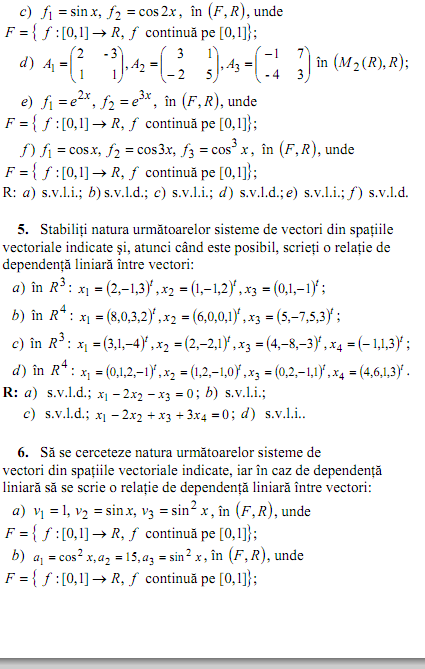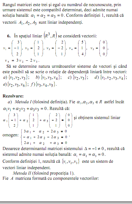 avem că şi este diferit de numărul de vectori din sistem, prin urmare este un sistem de vectori liniar dependent.