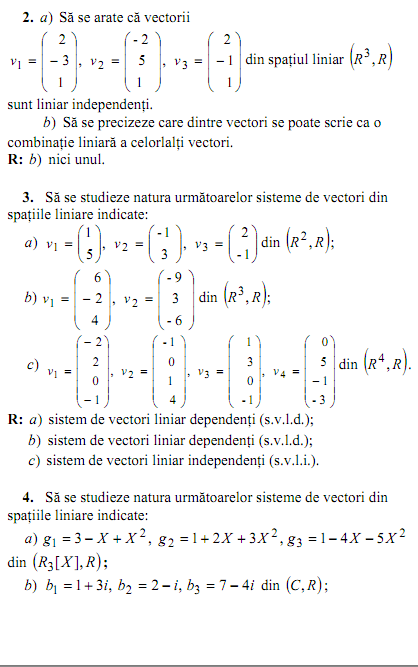 3.Să se studieze natura următoarelor sisteme de vectori din spaţiile liniare indicate: