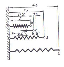 Pentru o deplasare finită din A în B a extremităţii M a resortului când acesta este întins, lucrul mecanic va fi: