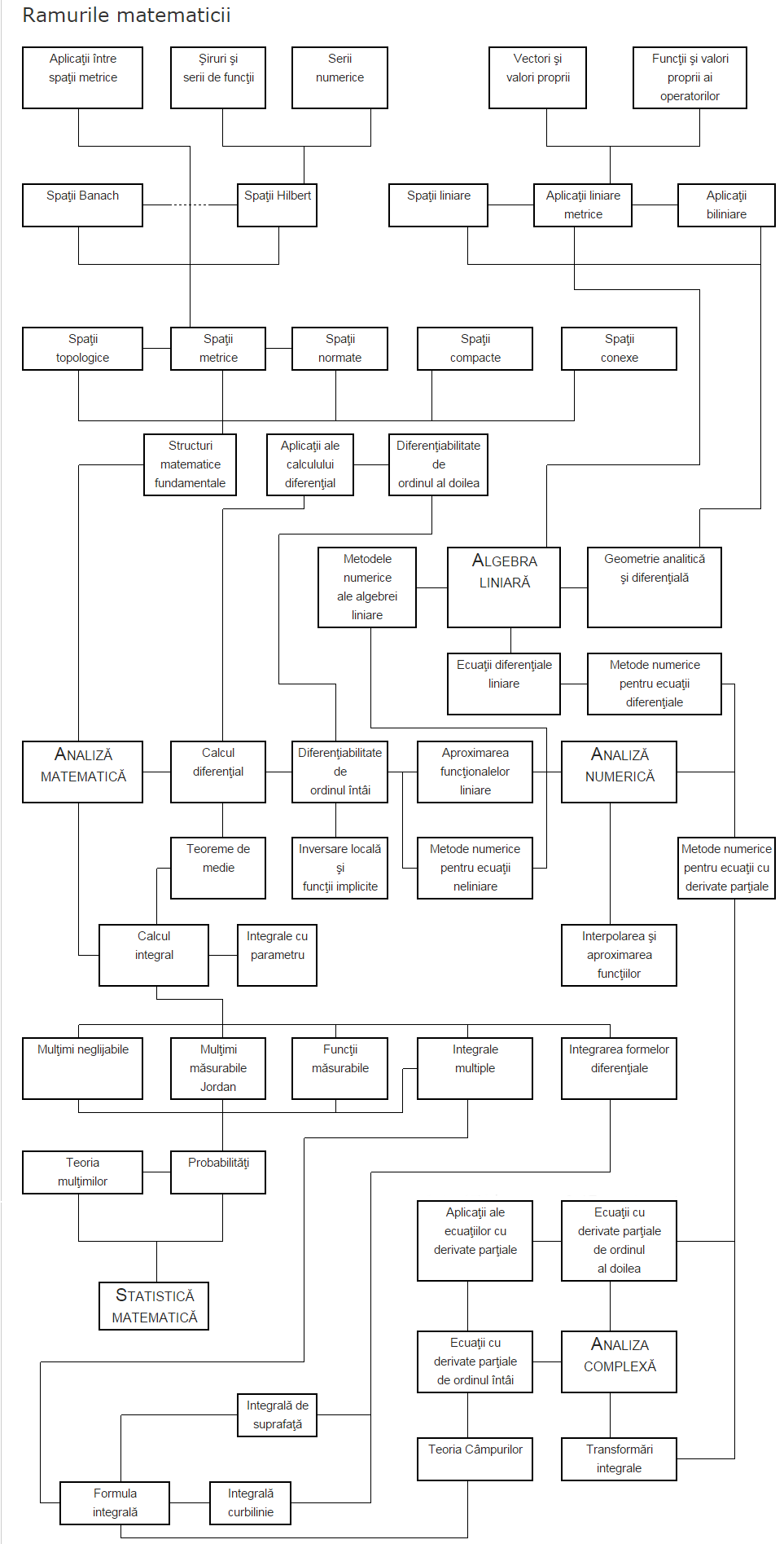 Logică matematică, Aritmetică, Algebră, Analiză matematică, Geometrie, Matematică discretă, Teoria numerelor, Topologie, Probabilități și statistică, Obiecte matematice