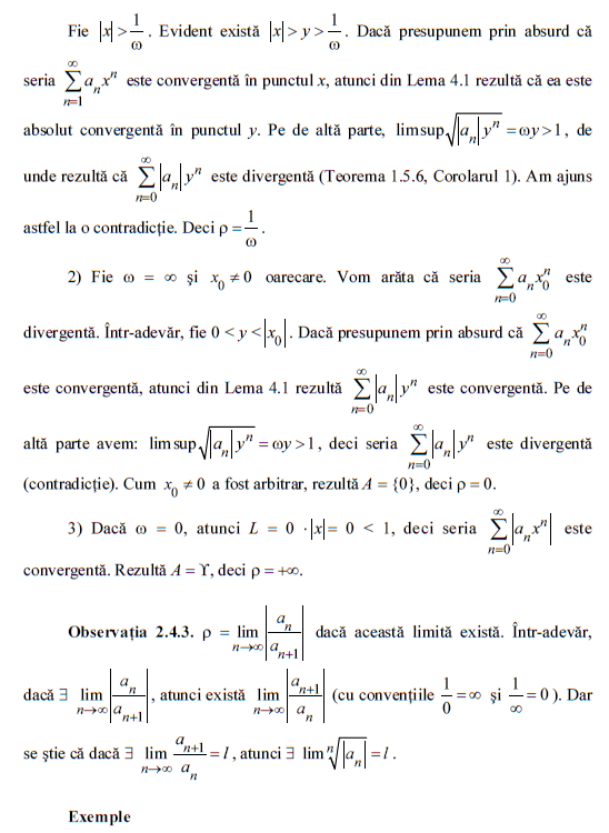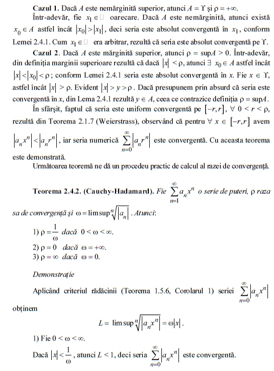 Teorema 1. [Abel-Cauchy-Hadamard.] Seria de puteri este absolut convergentă în orice punct x cu unde R este:
