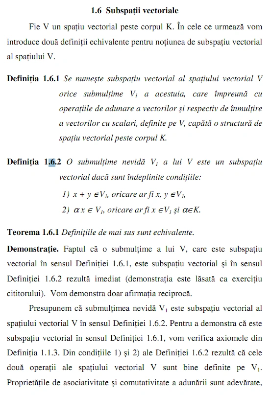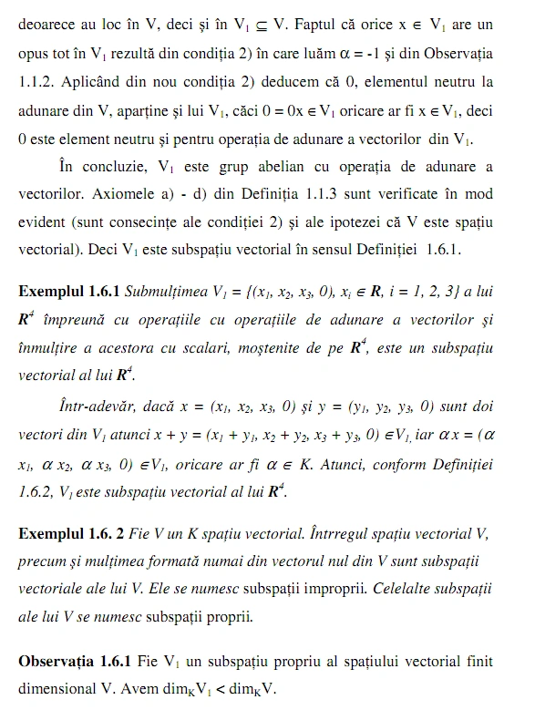 este subspaţiu vectorial al lui