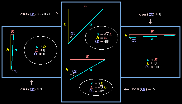 is the hypotenuse, is the leg adjoining at angle and the complementary, imaginary "leg" is the half-focal separation, or linear eccentricity, :