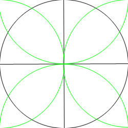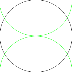 Make two circle that center at the two spots where the horizontal line intersects the circle. The curve of the two circles have to meet at the center of the circle you made in step one.