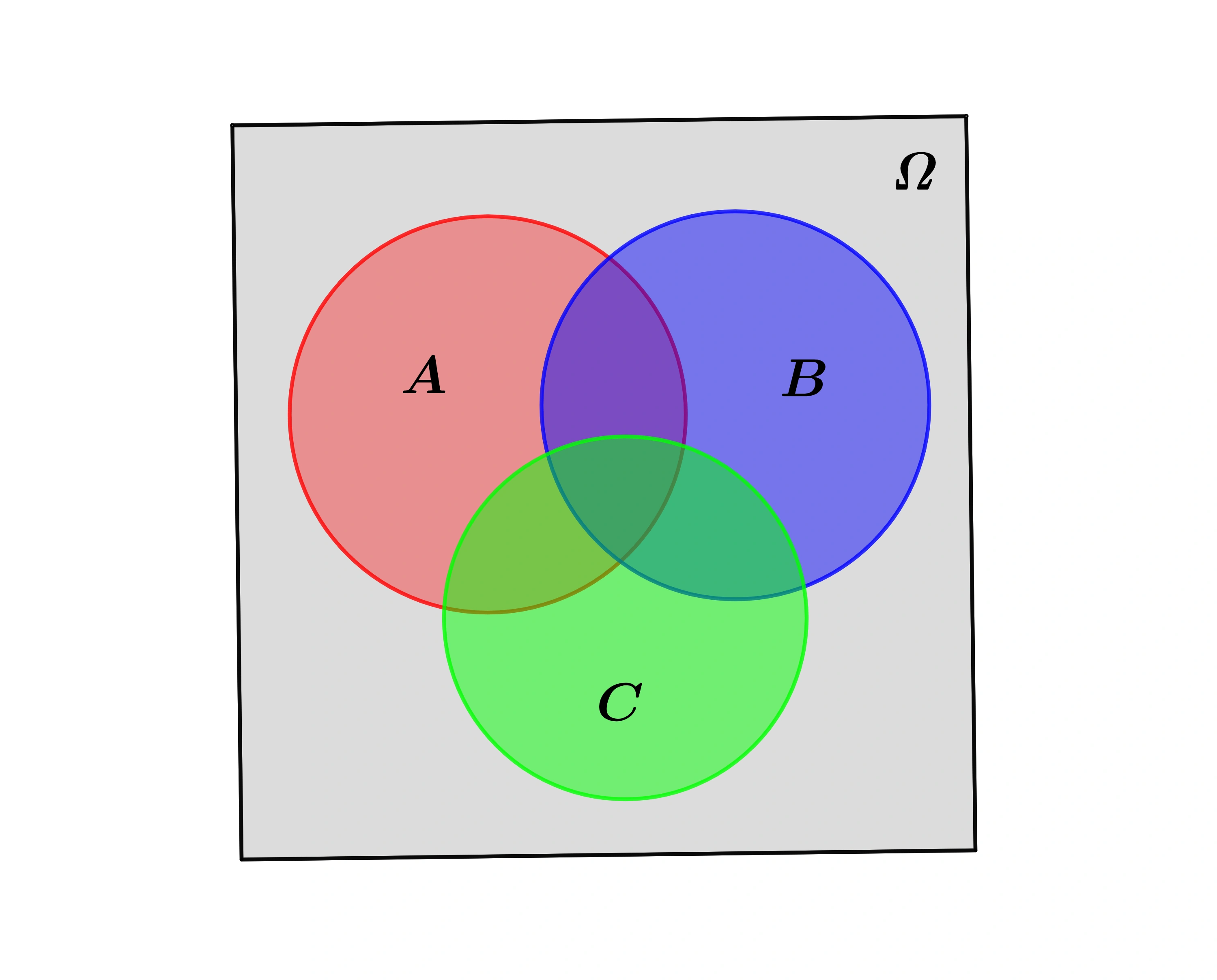 像集合那样,有时也可使用 Venn 图来表示有限个(例如2、3或4)事件的相互关系,例如有三个事件,如下图